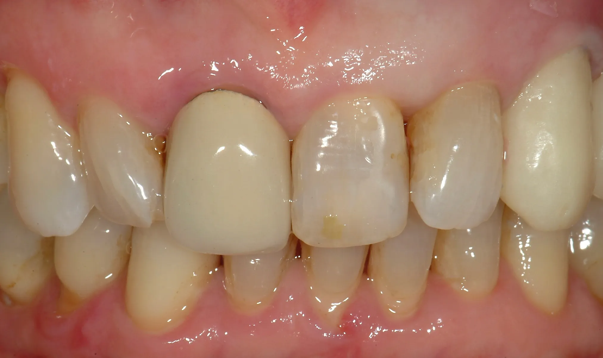 Ripristino completo dell'estetica e della funzionalità degli incisivi centrali con corone in Zirconia di alta qualità.