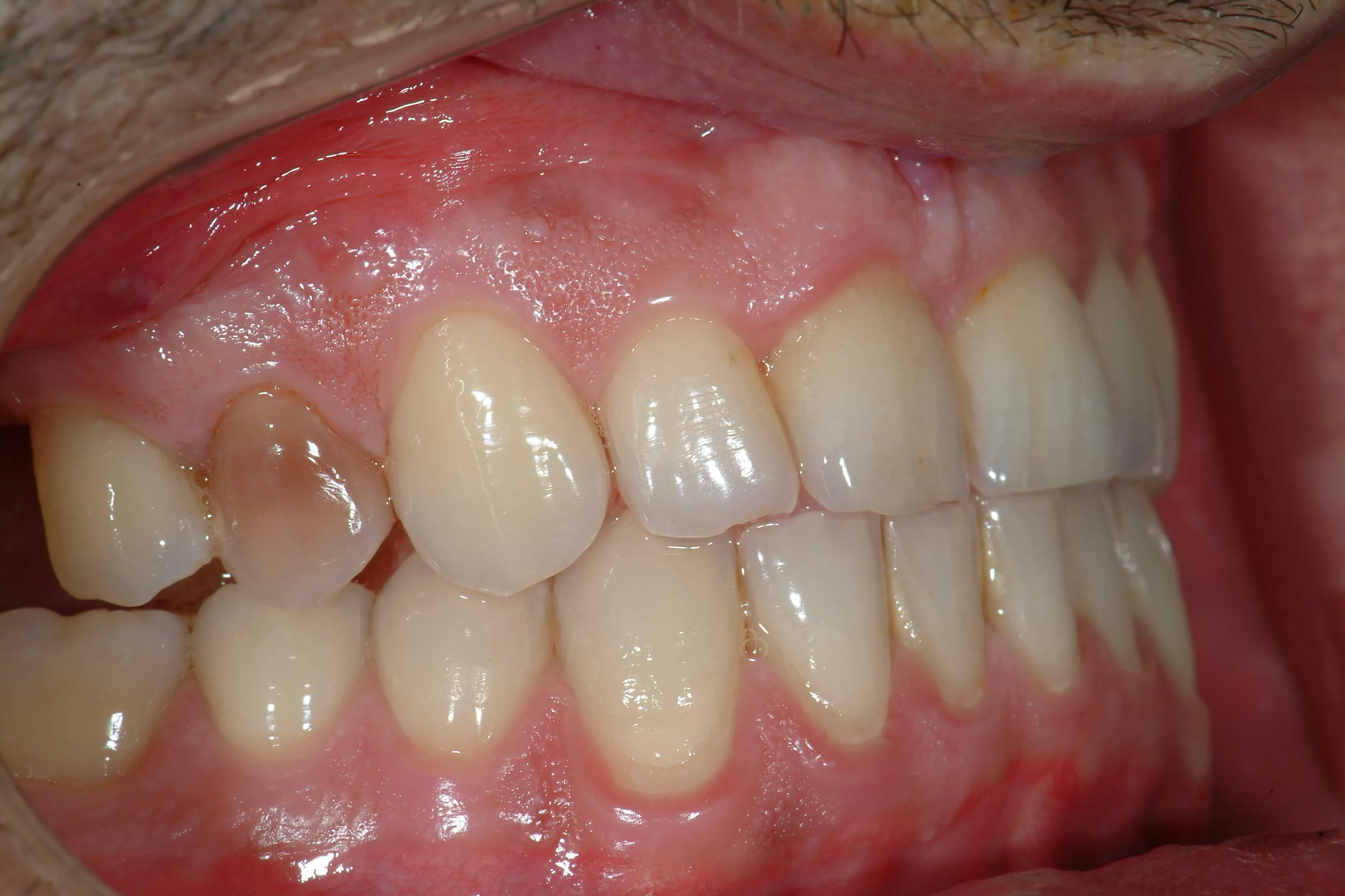 Il paziente si è presentato con un dente fratturato non recuperabile con terapie conservative. Dopo l'estrazione del elemento, abbiamo inserito un impianto dentale in titanio per sostituire la radice del dente. Dopo il periodo di osteointegrazione, durante il quale l'impianto si è saldamente integrato con l'osso circostante, abbiamo realizzato una corona protesica personalizzata. Il risultato finale ha permesso di ripristinare completamente sia l'estetica che la funzionalità masticatoria, con un risultato indistinguibile da un dente naturale.